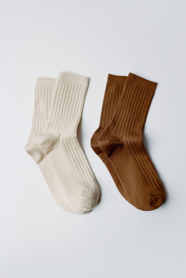 Ribbed dress sock in dark tan. Wear it pulled up to your mid-calf, or at the ankle for a relaxed, slouchy look. Made by Le Bon Shoppe.